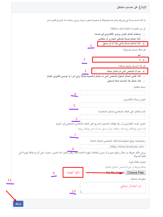 - قم بكتابة وصف مشكلتك باللغه التي تجيدها ووضح لهم فقدان حسابك او انتحال شخصيتك