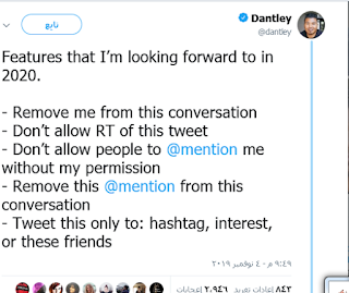 بهذه الروح ، أصدر دانتلى ديفيس ، نائب رئيس قسم التصميم والبحث في تو يتر ، مساء أمس قائمة بالميزات التي يقول إنه متحمس لـ "استكشافها" في عام 2020. وهي تشمل بعض التغييرات الأساسية في كيفية عمل Twitter ، وخاصة كيفية عمل إعادة تغريد و مدى حرية المستخدمين في جذب الآخرين إلى محادثاتهم مع أو بدون إذنهم.